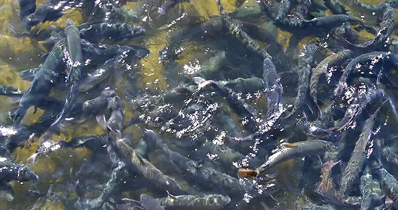River Pens/Cages: Floating cages placed directly in the Bolo River that allow water to flow through while keeping the fish contained.